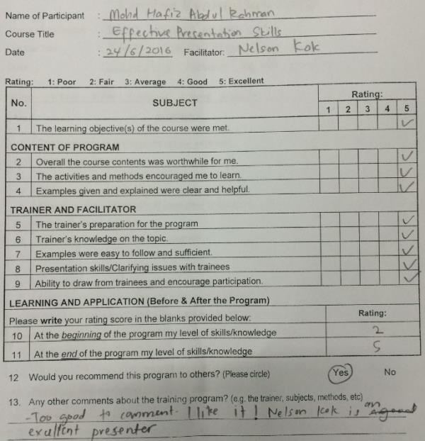 | 23-24/June/2016: Effective Presentation Skills ( for Motorola, Penang) |