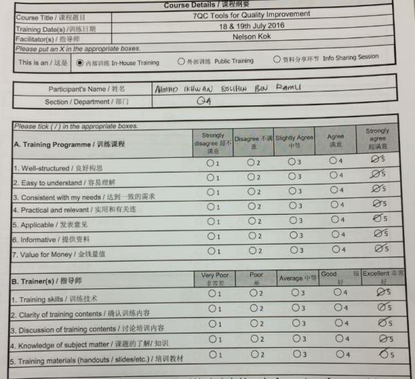 18-19/July/2016 : 7 QC Tools ( for Esquel, Penang) |