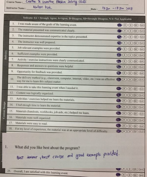 | 17-18/Jan/2018: Creative Problem Solving-Group 1 (for DELL, Penang) |