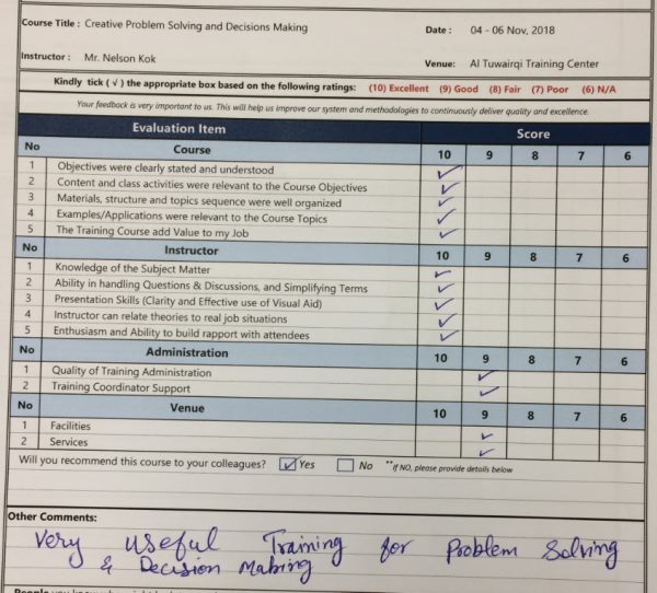 | 4-6/Nov/2018: Creative Problem Solving & Decision Making ( for Al-Ittefaq, Damman, Kingdom of Saudi Arabia) |